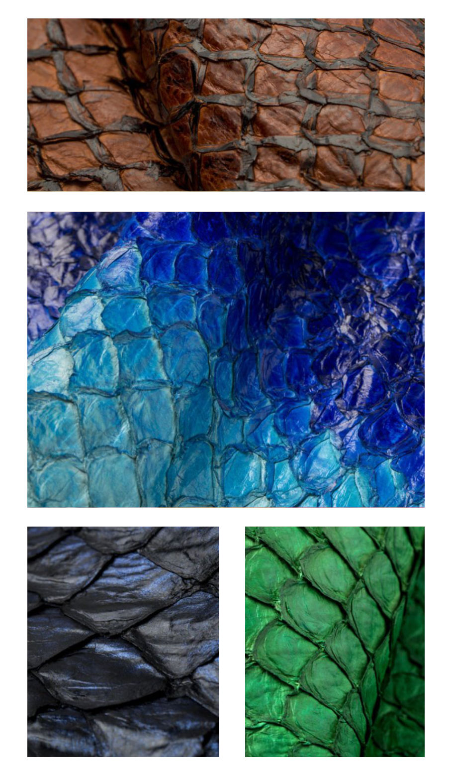 Todas as peles comercializadas em nossa empresa são originais, com cada animal sendo único e não padronizado. Nossos produtos podem apresentar pequenas variações de tons, desenhos, manchas e tamanhos das escamas, o que torna cada couro único e exclusivo.