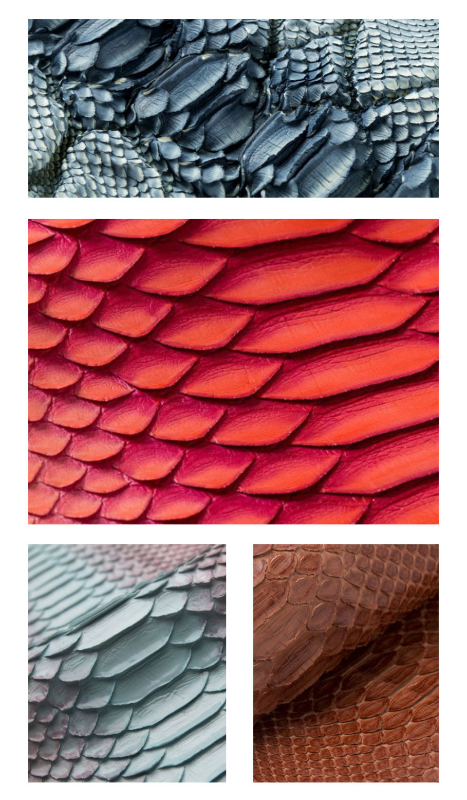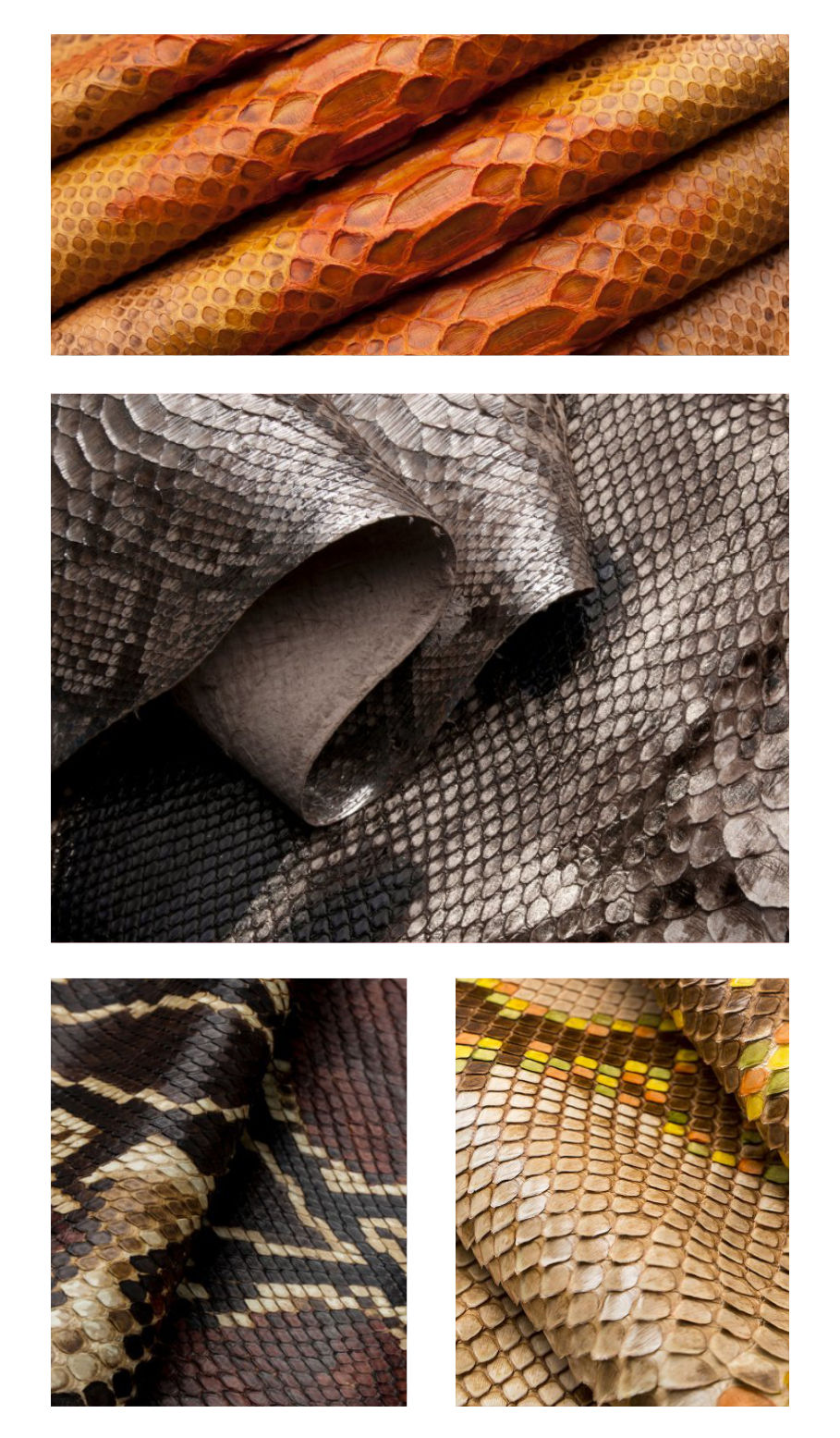 Todas as peles comercializadas em nossa empresa são originais, com cada animal sendo único e não padronizado. Nossos produtos podem apresentar pequenas variações de tons, desenhos, manchas e tamanhos das escamas, o que torna cada couro único e exclusivo.